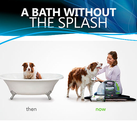 The BISSELL BarkBath is portable and allows you to give your dog a bath anywhere in the house without having to get near a tub or outdoor hose. Our patented dog grooming system. It lets pet parents bathe their dog with virtually no mess - eliminating the inevitable cleanup that comes along with washing a four-legged family member.