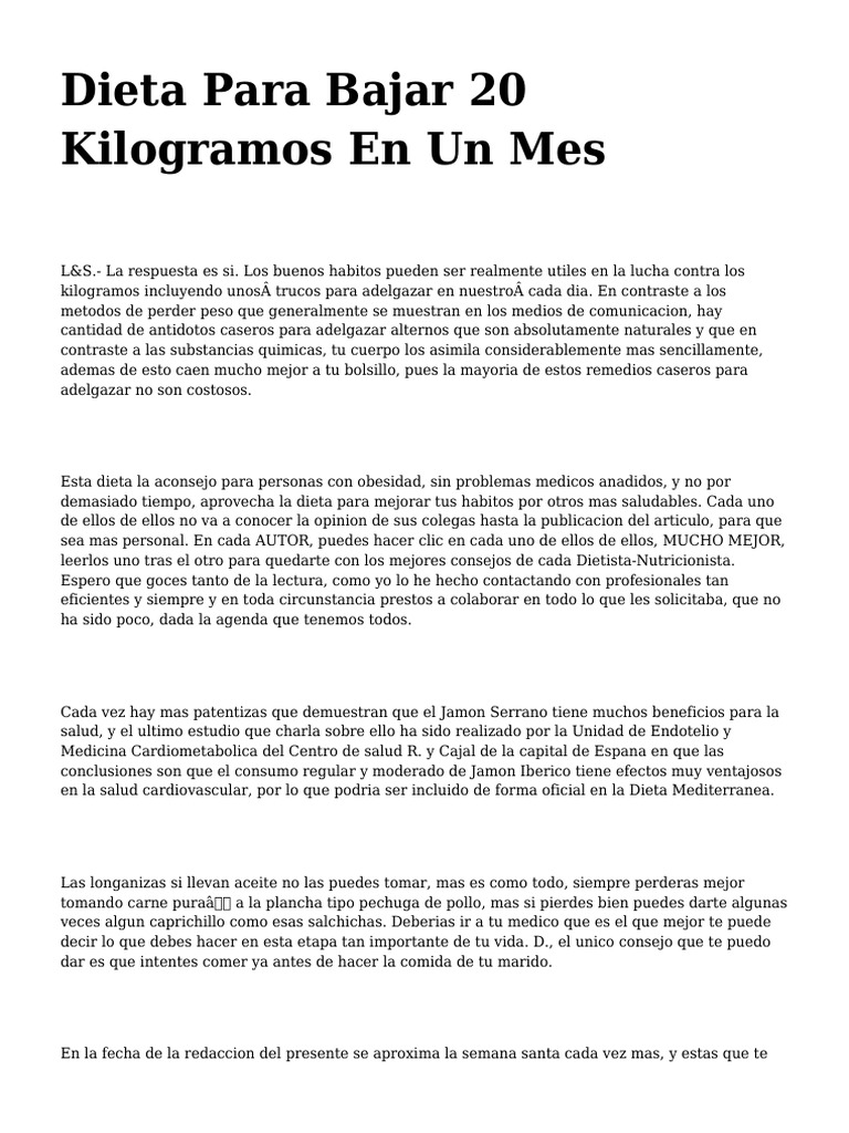 Dieta Para Bajar 20 Kilos En Un Mes