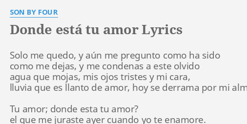 En donde está tu amor A donde se marchó A donde se esfumó aquella esperanza de que vuelvas Y es que solo el sabor De tus besos me llegan. Key BPM for En Donde Esta Tu Amor by Virlan Garcia.